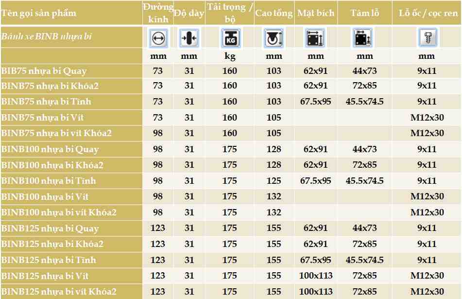 Bánh xe đẩy BINB giá rẻ là sản phẩm hỗ trợ trong việc vận chuyển hàng hóa, đặc biệt đối với các doanh nghiệp trong lĩnh vựa sản xuất hàng loạt số lượng lớn. Sản phẩm bánh xe đẩy BINB giá rẻ được sử dụng phổ biến trong nhiều lĩnh khác nhau. Tuy nhiên sản phẩm bánh xe đẩy BINB giá rẻ còn tồn tại vài nhược điểm như chất lượng sản phẩm có độ bền thấp, khả năng chống mài mòn chưa cao, khi di chuyển gây tiếng ồn và rất khó khăn khi địa hình gồ ghề , không phù hợp với cường độ làm việc cao, chống chịu va đập kém.