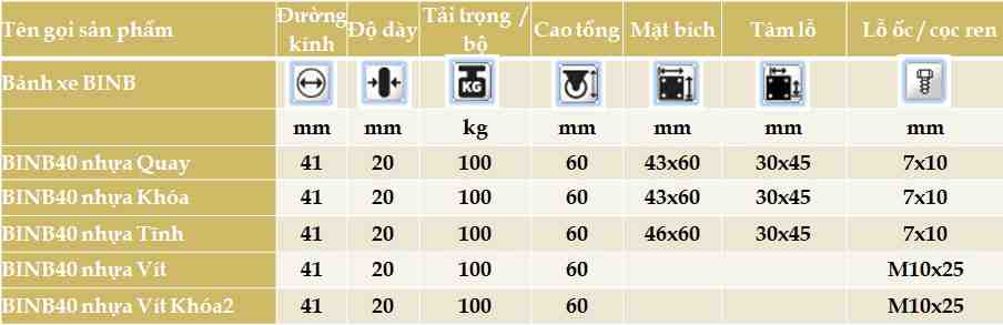 Bánh xe BINB40 nhựa bi vít Khóa2