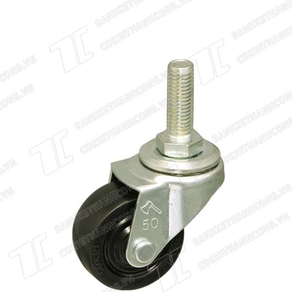 Tải trọng 120~150 kg / bộ (4 bánh xe). Bánh xe đường kính 50x21 mm. Ưu điểm càng bánh xe khá dầy chắc vật liệu bánh xe là cao su chất lượng tốt bền, di chuyển êm ái hình thức khá. Phù hợp với cường độ làm việc nhẹ ít đi lại. Nhược điểm: đường kính bánh xe 50 mm nhỏ chỉ phù hợp với di chuyển ít tốc độ < 2km/giờ.