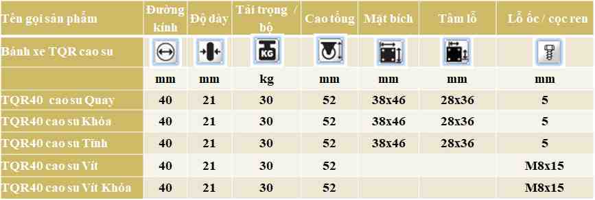 Với dòng sản phẩm bánh xe đẩy TQR giá rẻ, có lốp bánh xe làm bằng cao su di chuyển êm ái với ưu điểm tiện lợi, được sử dụng phổ biến cho sản xuất nhỏ lẻ tại gia đình. Tuy nhiên sản phẩm bánh xe TQR giá rẻ vẫn còn một số điểm nhất định mà bạn cần phải lưu ý khi sử dụng sản phẩm. Khả năng chịu tải thấp dẫn tới việc di chuyển khó khăn khi chở vật nặng. Chất liệu bánh xe là cao su nên có độ bền kém hơn so với các chất liệu các dòng bánh xe khác. Bánh xe TQR giá rẻ lốp cao su dễ bị bào mòn, chống va đập kém, kháng hóa chất yếu nên không thể hoạt động trong môi trường hóa chất, khu công nghiệp nặng.